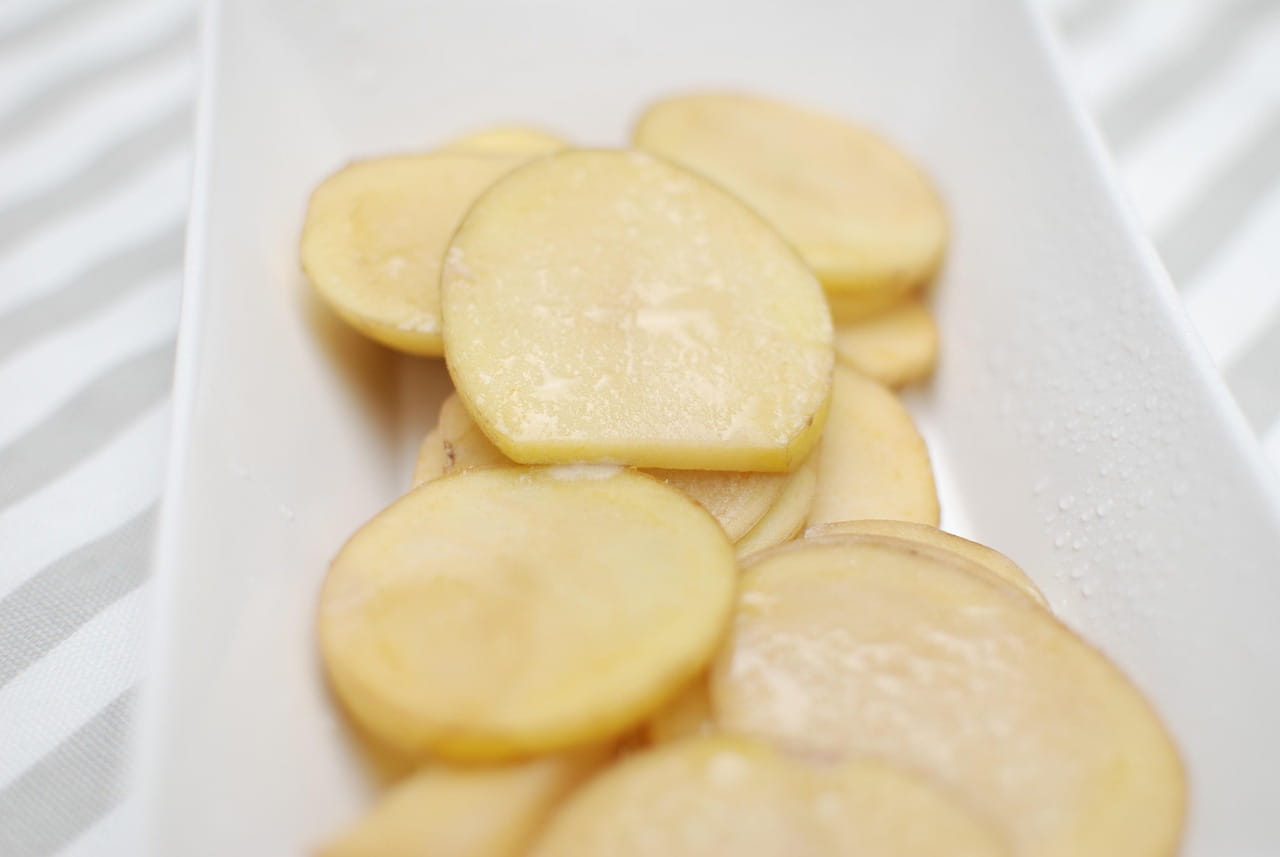 سیب زمینی ورقه ای در اندازه های یک دست و طلایی